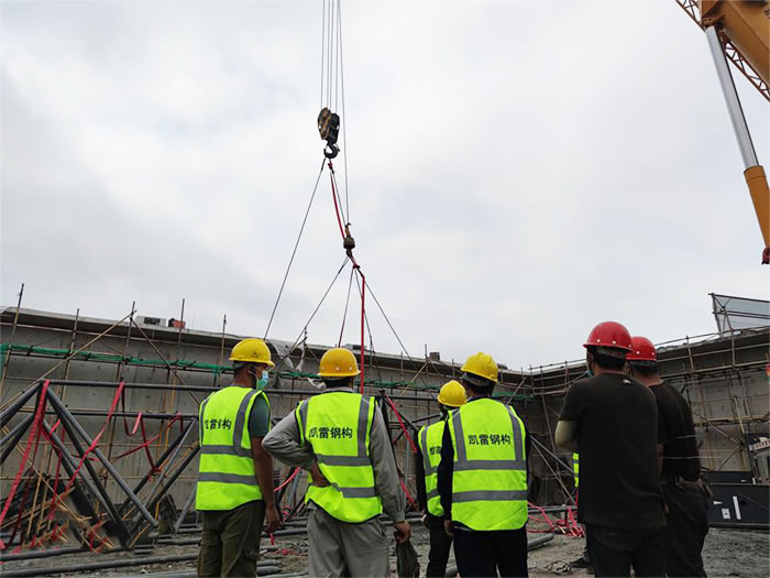 6.为确保.巴南加油站球形网架安装顺利,应有详细的巴南施工组织设计。网架安装必须保证结构的稳定性和不产生的附加变形。