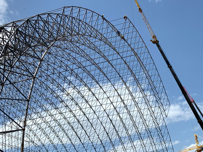 (2)网架加工前应对现场尺寸进行复测,确认无误后方可进行加工、安装;网架制作、运输、安装应遵守《空间网格结构技术规程》JGJ7-2010、《钢网架巴南螺栓球节点》JG/T 10-2009、《钢网架巴南螺栓球节点用高强度螺栓》 GB/T 16939-2016、《巴南钢结构巴南工程巴南施工规范》 GB50755-2012、《巴南钢结构巴南工程施工质量验收标准》 GB50205-2020。