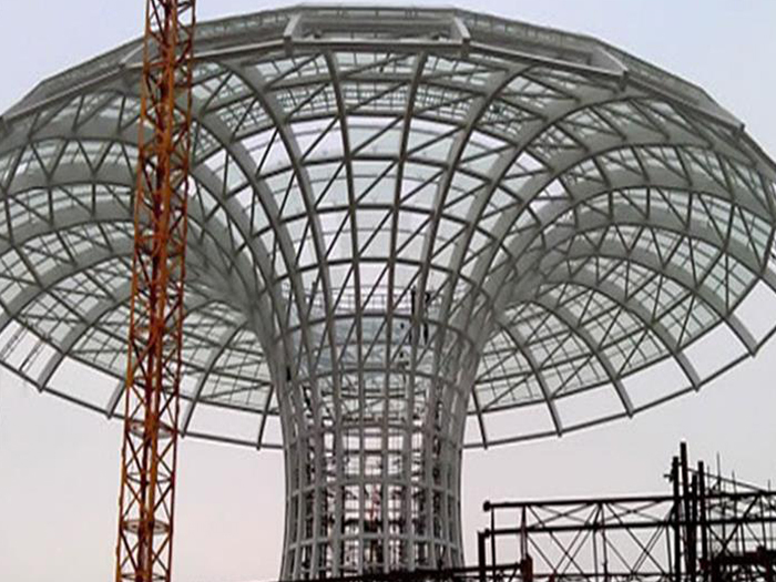 二、球形网架结构因其结构新颖,受力合理,自重轻、用钢量低等优点。如大型体育场馆球形巴南螺栓球网架、公共场馆球形网架、电厂巴南螺栓球网架、水泥工业球形网架、仓储物流球形网架、巴南干煤棚工业球形网架、巴南收费站巴南加油站球形网架、展览中心、影剧院、商场、航站楼、候车厅、工厂巴南车间、仓库、电视塔等球形螺栓球节点网架。国内球形网架结构主要分为:巴南焊接球节点网架及螺栓球节点网架两种。螺栓球节点网架其构件工厂内加工量较大,现场安装便捷,适用于现场工期紧,巴南施工条件、用电量受制约,网架形状复杂、巴南杆件定位困难的异形结构。螺栓球节点球形网架系统基本由巴南杆件、螺栓球、支撑支座等组成。按照节点形式可分为交叉巴南桁架体系、四角锥体系、三角锥体系等。支撑方式多为固定支座支撑。对于大面积、大跨度及有特殊受力或伸缩要求的网架结构可采用橡胶支座、滑移支座、球铰支座等支撑形式,以满足结构自身的受力稳定、均衡,便于内力释放等设计要求。